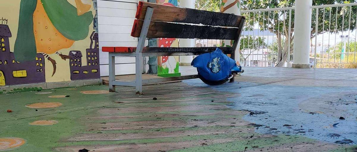 Ακόμα, συνέχισε «από τις κροτίδες που έριχναν άγνωστα άτομα, το απόγευμα του Μεγάλου Σαββάτου, κάηκαν ένα παγκάκι και πλαστικοί κάλαθοι που βρίσκονταν στην αυλή του Σχολείου».