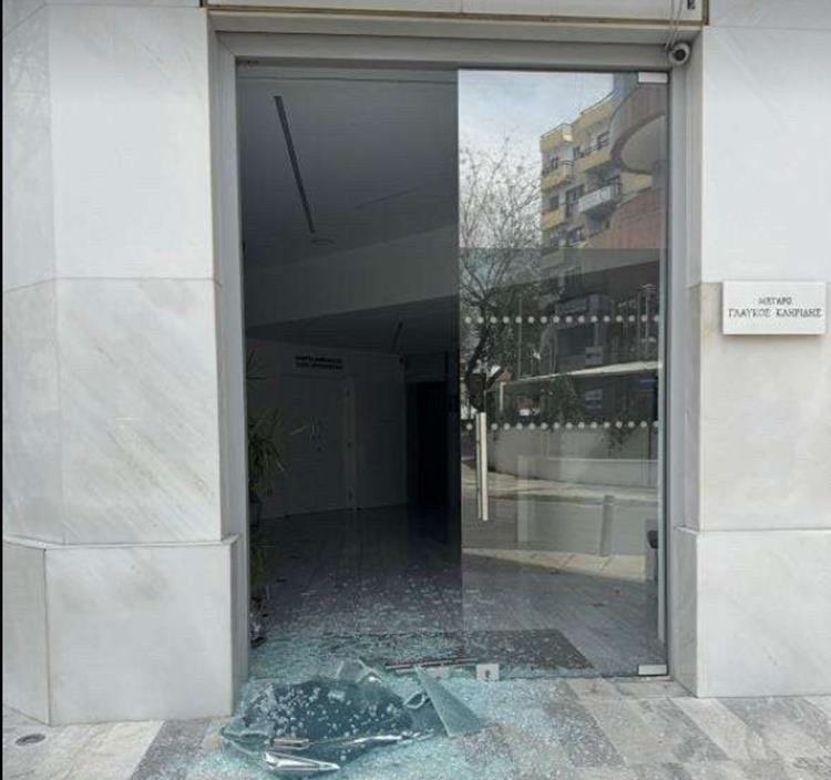 Ζημιές στην είσοδο των γραφείων του ΔΗΣΥ-Άγνωστοι έσπασαν την τζαμαρία