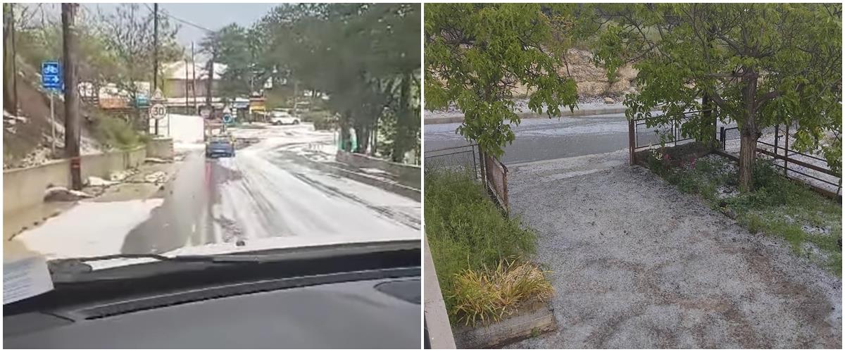 Περισσότερο χειμώνα παρά άνοιξη θυμίζει το σκηνικό του καιρού, καθώς σε διάφορες περιοχές της Κύπρου έχουν ανοίξει οι ουρανοί, με αποτέλεσμα να ασπρίσουν οι δρόμοι από το χαλάζι και να δημιουργηθούν προβλήματα.