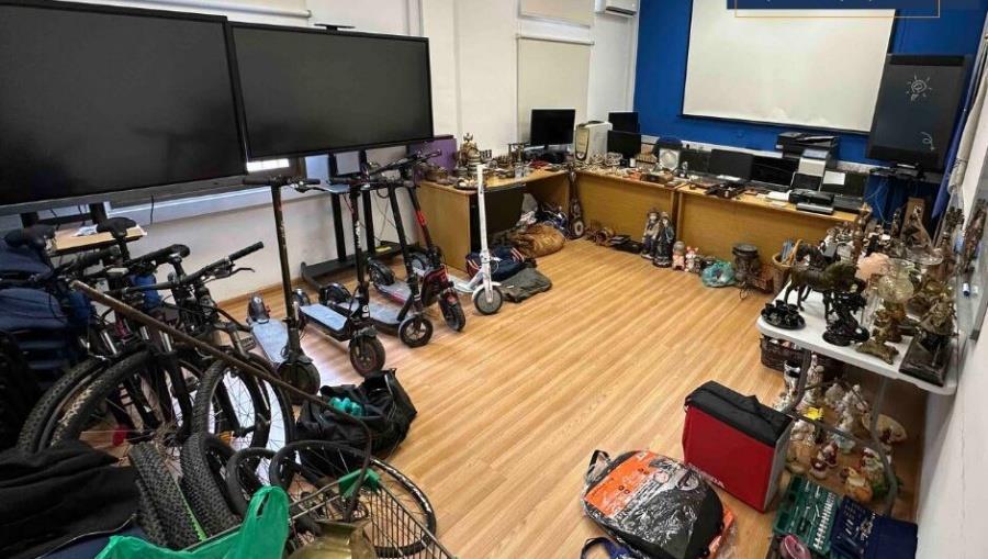 Ακολούθησε έρευνα στην οικία του 39χρονου, όπου εντοπίστηκε και κατασχέθηκε μεγάλος αριθμός από πιστωτικές κάρτες, ποδήλατα, ηλεκτρικά πατίνια, ηλεκτρονικούς υπολογιστές, εργαλεία και άλλα αντικείμενα αξίας, τα οποία πιστεύεται ότι αποτελούν προϊόντα κλοπής.