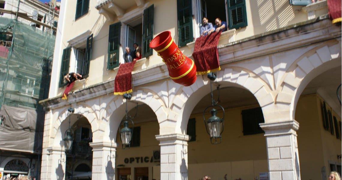 Πάρα πολλοί Κερκυραίοι αλλά και επισκέπτες ρίχνουν από τα παράθυρα και τα μπαλκόνια τους τα πήλινα αυτά κόκκινα αγγεία, που συμβολίζουν τον κρότο με τον οποίο εξέρχεται από τον Άδη ο Κύριος και την κυριαρχία της ζωής επί του θανάτου.