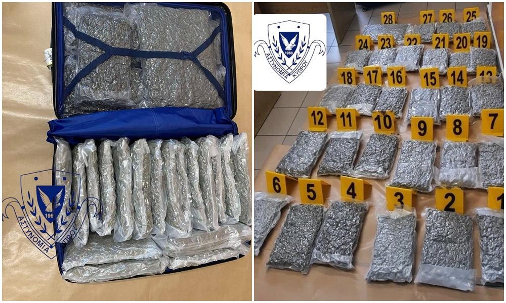 Κοπέλα ηλικίας 21 ετών συνελήφθη σήμερα στο αεροδρόμιο Λάρνακας όταν στην αποσκευή της φέρεται να εντοπίστηκαν σε 28 συνολικά συσκευασίες, που περιήχαν 16 περίπου κιλά κάνναβης.