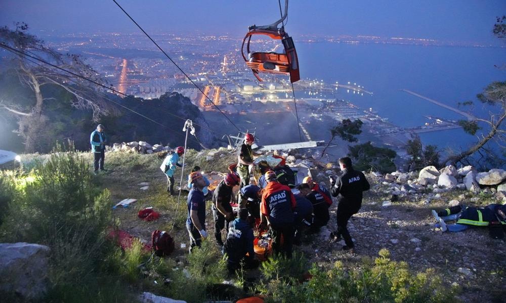 Συνεχίζεται η μεγάλη επιχείρηση διάσωσης στην Αττάλεια της Τουρκίας, καθώς δεκάδες άνθρωποι έχουν εγκλωβιστεί σε τελεφερίκ στον αέρα, μετά το δυστύχημα με έναν νεκρό και 10 τραυματίες, που σημειώθηκε εχθές, όταν ένα από τα βαγόνια τελεφερίκ που μετέφερε επιβάτες, συγκρούστηκε με στύλο, με αποτέλεσμα να ανοίξει και να πέσουν οι άνθρωποι στη βουνοπλαγιά.