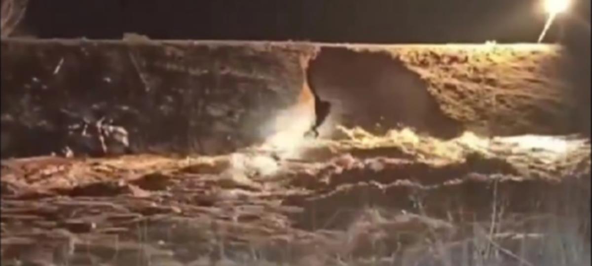Μη επαληθευμένα πλάνα που αναρτήθηκαν στην εφαρμογή Telegram φαίνεται να δείχνουν νερό να αναβλύζει μέσα από μια ρωγμή σε ένα χαμηλό γεώφραγμα.