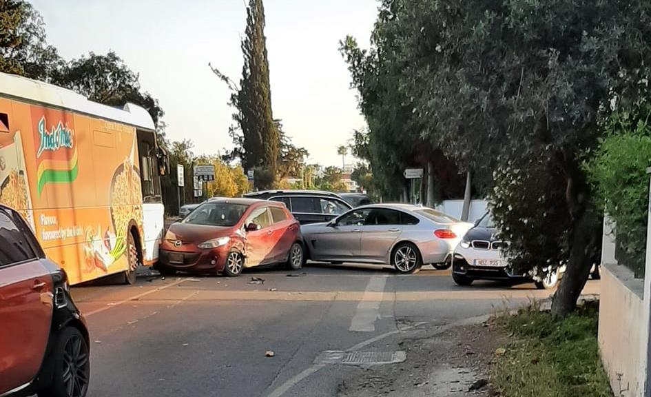 Τροχαίο ατύχημα σημειώθηκε αργά το απόγευμα στην Έγκωμη, όταν λεωφορείο συγκρούστηκε με αυτοκίνητα, προκαλώντας κυκλοφοριακή συμφόρηση.