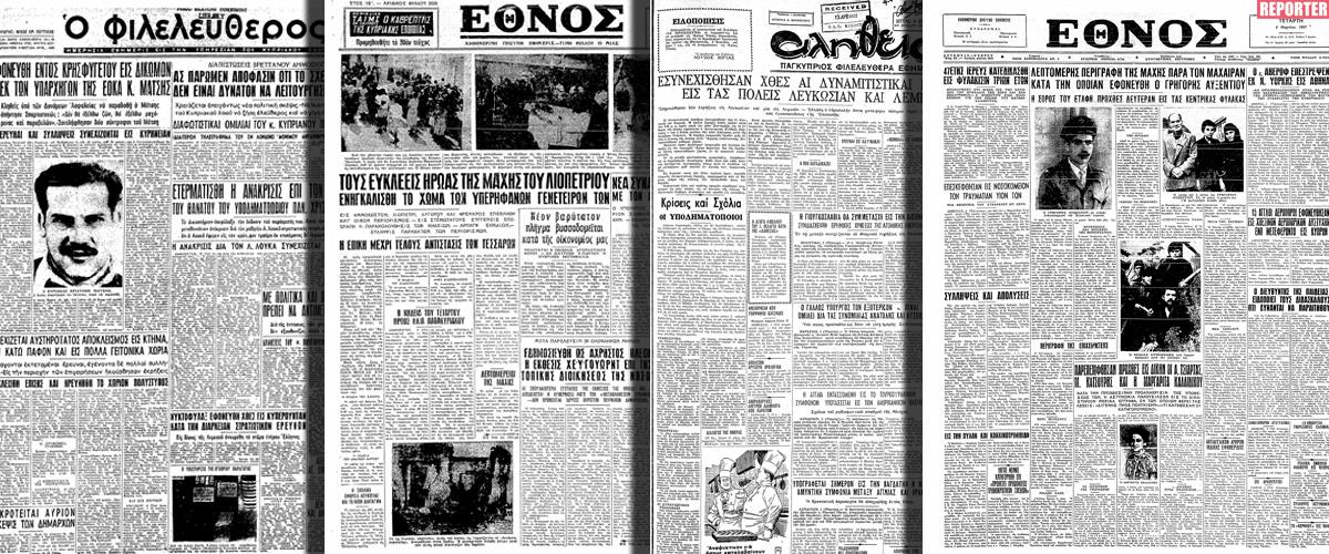 «Αλλεπάλληλοι ψεσιναί εκρήξεις εις την Λευκωσία και Λάρνακα», «εκκωφαντικαί εκρήξεις συνεκλόνισαν μετά τας μεσονυκτίους ώρας Λευκωσία, Λάρνακα και Λεμεσόν». Αυτοί ήταν οι τίτλοι στα πρωτοσέλιδα των εφημερίδων της 1ης Απριλίου 1955. Με αυτές τις λέξεις η Κύπρος έμαθε τη δράση της ΕΟΚΑ. Με αυτές τις εκρήξεις, άρχισε ο απελευθερωτικός αγώνας των Κυπρίων έναντι των Βρετανών.