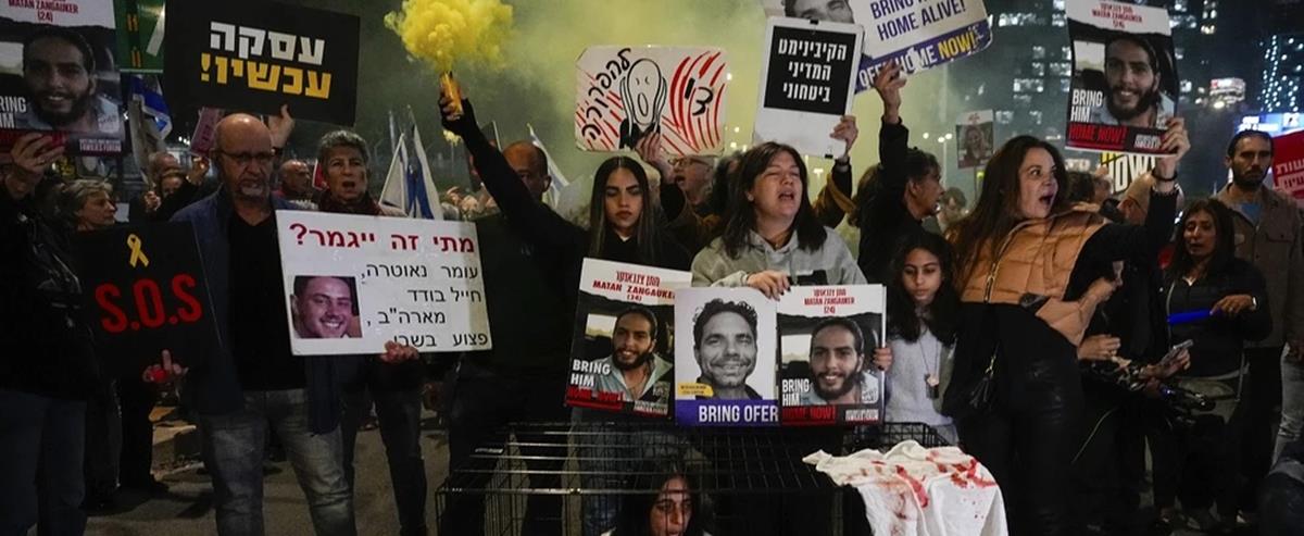 Το παλαιστινιακό ισλαμιστικό κίνημα είχε αρπάξει περισσότερους από 250 ομήρους σε μια άνευ προηγουμένου επίθεση στο ισραηλινό έδαφος. Σχεδόν 100 όμηροι αφέθηκαν ελεύθεροι με αντάλλαγμα την αποφυλάκιση Παλαιστινίων κρατουμένων στο Ισραήλ κατά τη διάρκεια εκεχειρίας στα τέλη Νοεμβρίου. Σύμφωνα με απολογισμό των ισραηλινών αρχών, 130 απαχθέντες παραμένουν στη Λωρίδα της Γάζας, εκ των οποίων 34 πιστεύεται όμως ότι δεν είναι πλέον στη ζωή.