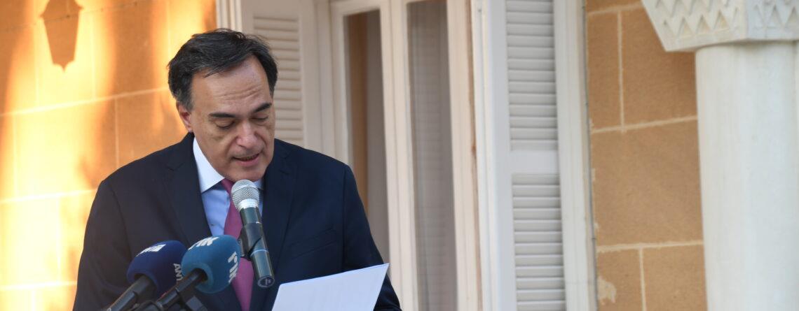 Ο κ. Παπαμελετίου τόνισε ότι η Ελλάδα συνεχίζει να στηρίζει με κάθε τρόπο τις προσπάθειες του Προέδρου της Κυπριακής Δημοκρατίας Νίκου Χριστοδουλίδη και της προσωπικής απεσταλμένης του Γενικού Γραμματέα των Ηνωμένων Εθνών για την επανέναρξη των διαπραγματεύσεων με στόχο την επίλυση του Κυπριακού.