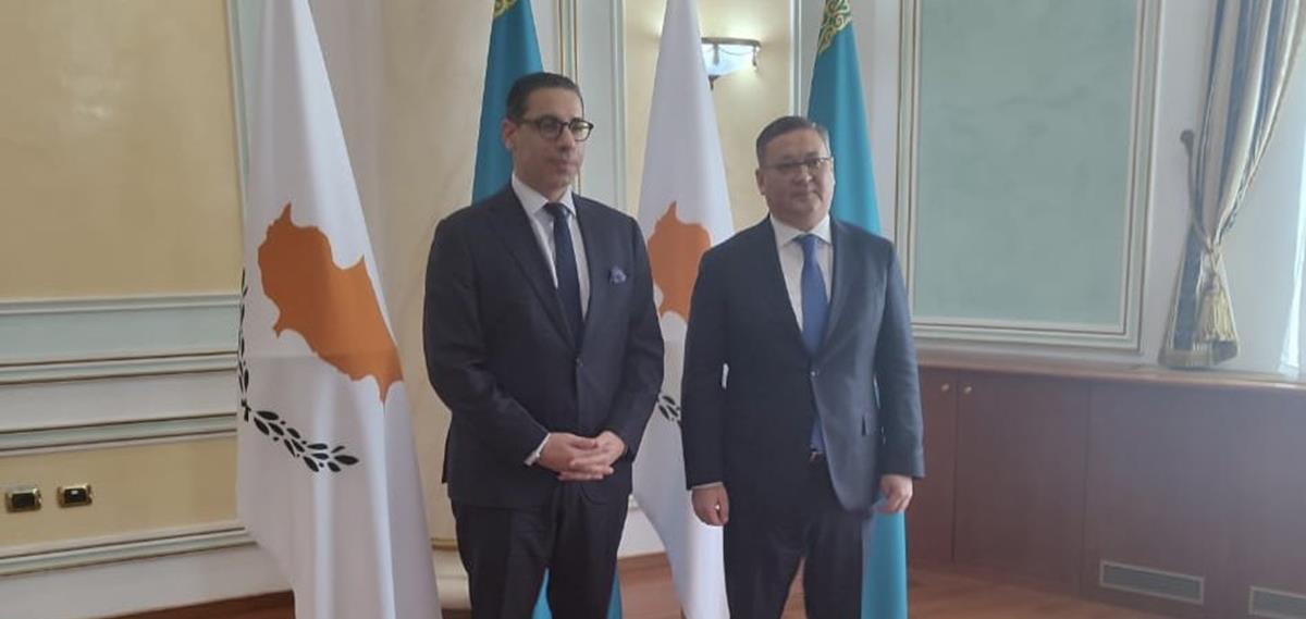 Σε αξιολόγηση των διμερών σχέσεων μεταξύ Κύπρου και Καζακστάν, με στόχο την περαιτέρω ενίσχυση και εμβάθυνσή τους, προέβησαν ο Υπουργός Εξωτερικών Κωνσταντίνος Κόμπος με τον ομόλογο του, Αναπληρωτή Πρωθυπουργού και Υπουργού Εξωτερικών του Καζακστάν Murat Nurtleu, κατά την επίσημη επίσκεψη του κ. Κόμπου στη χώρα τη Δευτέρα.