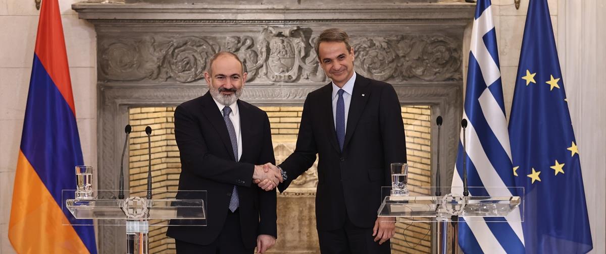 Τη στήριξη της Ελλάδας προς την Αρμενία στις διπλωματικές προσπάθειες για εύρεση μιας βιώσιμης λύσης και για μόνιμη ειρήνη με το Αζερμπαϊτζάν, καθώς και τη σταθερή ευθυγράμμιση της Αθήνας με το Διεθνές Δίκαιο, υπογράμμισε ο Έλληνας Πρωθυπουργός Κυριάκος Μητσοτάκης, στις δηλώσεις του μετά τη συνάντησή του με τον Πρωθυπουργό της Αρμενίας Νίκολ Πασινιάν, στο Μέγαρο Μαξίμου