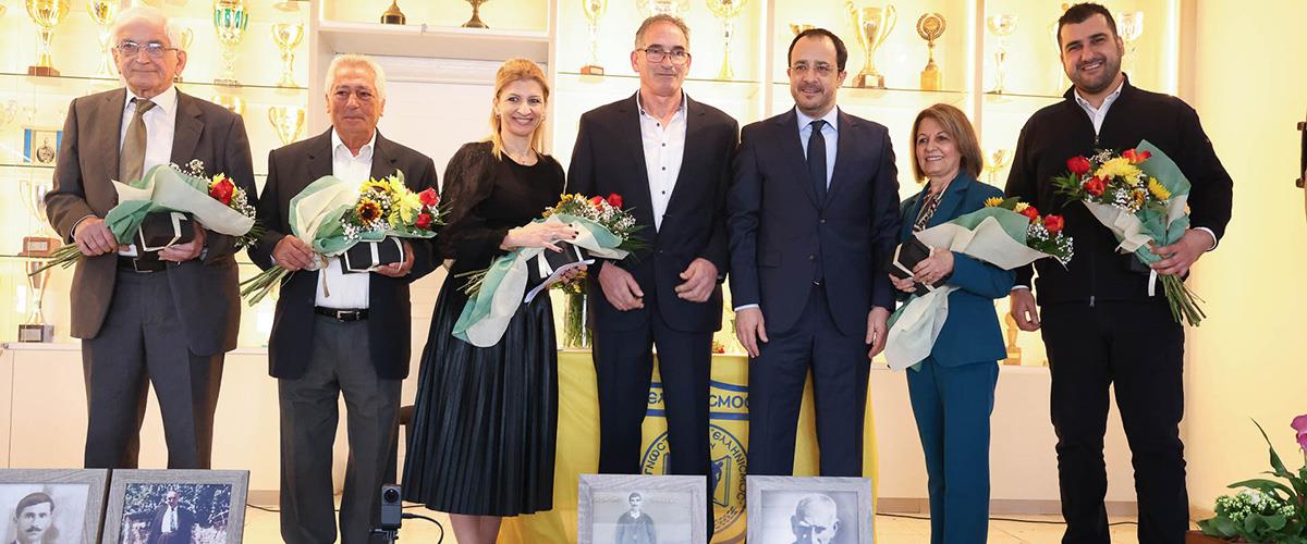 Στην τελετή, που πραγματοποιήθηκε στο οίκημα του Σωματείου, μνημονεύθηκαν και βραβεύτηκαν οι πέντε ιδρυτές του ιστορικού σωματείου, Ματθαίος Μαυρομμάτης, Κύπρος Ρωσσίδης, Χατζηγιάννης Χατζηθεοδοσίου, Χριστοφής Χατζηθεοφάνους και Γιώργος Πελεκάνος. Τα βραβεία πήραν είτε εγγόνια είτε δισέγγονα των βραβευθεντων αναδεικνύοντας την ιστορική πορεία του σωματείου.