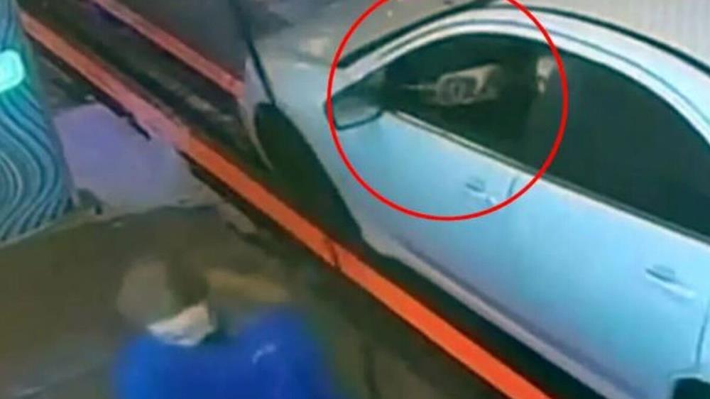Στο βίντεο από κάμερα ασφαλείας φαίνεται η Άννα Χαρίκι, όπως είναι το όνομα της 18χρονης, να πλένει με νερό με πίεση ένα άσπρο αυτοκίνητο όταν ξαφνικά η οδηγός του ανοίγει το παράθυρο και της πετάει ένα ποτήρι με λεμονάδα.