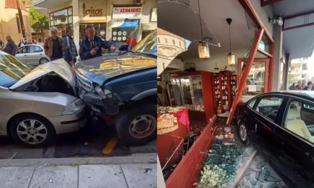 Από το ατύχημα σημειώθηκαν σοβαρές υλικές ζημιές σε τρία σταθμευμένα οχήματα, στο αγροτικό καθώς και στο κατάστημα.