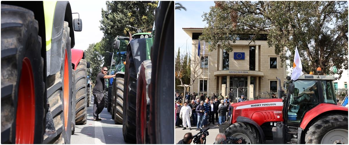 Η πορεία των αγροτικών οργανώσεων, με δεκάδες τρακτέρ, ξεκίνησε από το χώρο στάθμευσης του σταδίου ΓΣΠ και κατέληξε στο Σπίτι της Ευρώπης στη λεωφόρο Λόρδου Βύρωνος, όπου θα επιδοθεί ψήφισμα με αποδέκτη την Ευρωπαϊκή Επιτροπή.