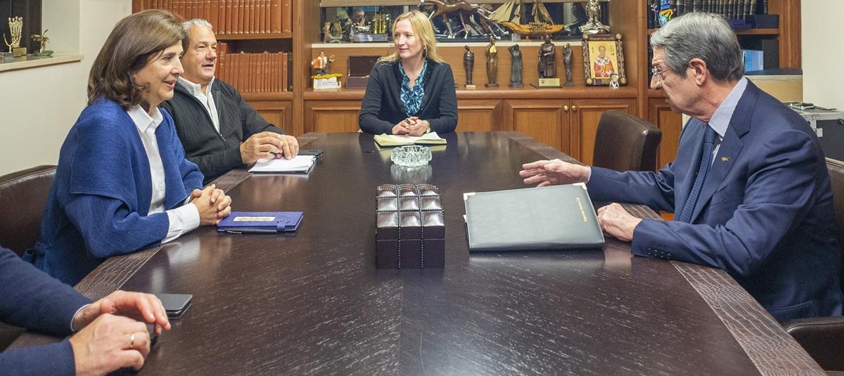Την προσωπική απεσταλμένη του ΓΓ του ΟΗΕ, Μαρία Άνχελα Ολγκίν Κουεγιάρ, υποδέχθηκε, αργά το απόγευμα, ο τέως Πρόεδρος της Δημοκρατίας, Νίκος Αναστασιάδης, στο πολιτικό του γραφείο, στη Λεμεσό.