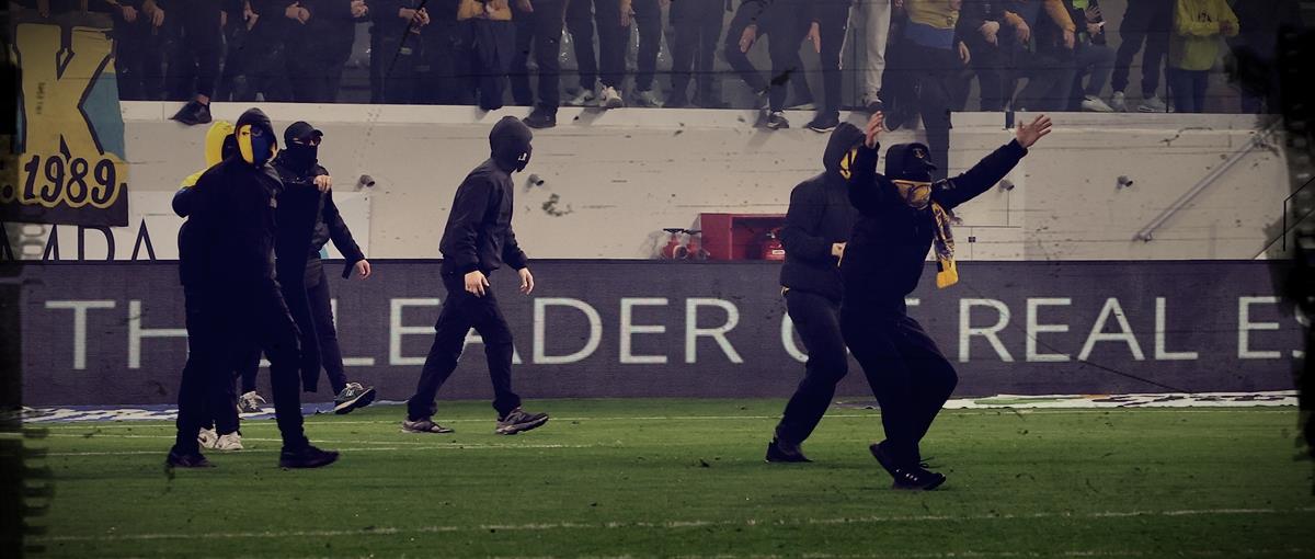 Για ακόμα μια φορά μια παρέα νεαρών, κατάφεραν να γελοιοποιήσουν ολόκληρο το σύστημα, με δεκάδες πυρσούς που άναψαν πριν την έναρξη του αγώνα. Και στη συνέχεια, συνέχισαν την παράσταση, με θεαματική είσοδο στο γήπεδο, η οποία κράτησε για κάποια λεπτά, μέχρι να λειτουργήσουν τα αντανακλαστικά της κυπριακής Αστυνομίας και να μπει μέσα να τους περιορίσει. Θα ήταν πολυτέλεια, βέβαια, να μιλάμε για επ αυτοφώρω συλλήψεις ή προσαγωγές, εκείνων που χάλασαν, ένα ποδοσφαιρικό αγώνα.