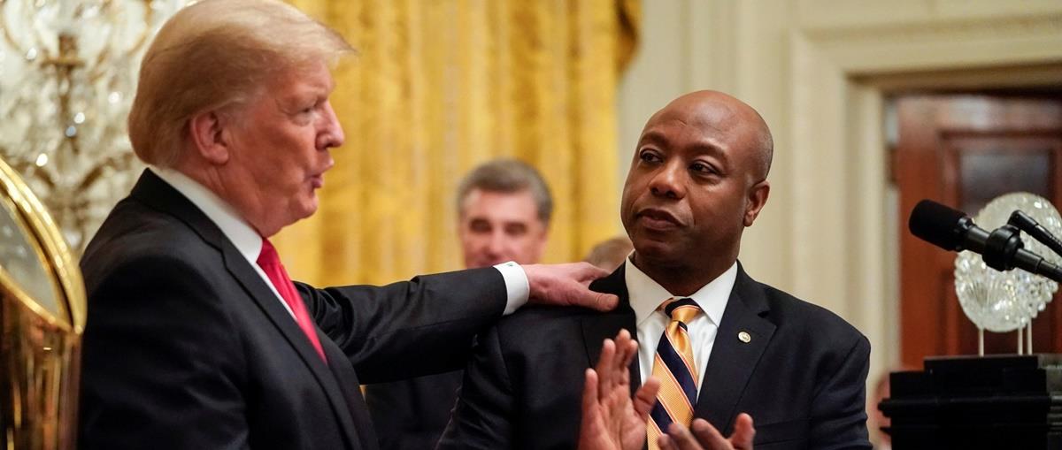 Η απόφαση του μοναδικού μαύρου ρεπουμπλικάνου γερουσιαστή ανακοινώθηκε τέσσερις ημέρες πριν την κρίσιμη εσωκομματική ψηφοφορία σ’ αυτήν την πολιτεία, όπου ο μεγιστάνας αναμετράται με την πρώην κυβερνήτη της Νότιας Καρολίνας και πρώην πρεσβευτή στον ΟΗΕ.