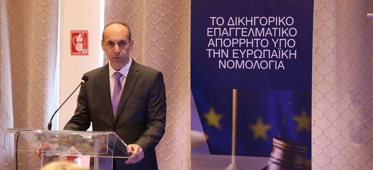Τα τελευταία χρόνια η ΕΕ έχει εντείνει τις προσπάθειές της για διασφάλιση της ακεραιότητας των νομικών επαφών μεταξύ δικηγόρων και πελατών, σημείωσε, και αναφέρθηκε και στην νομολογία του Δικαστηρίου της ΕΕ που επιβεβαιώνει, όπως είπε, την προέκταση του δικηγορικού απορρήτου, πέραν των δικαστικών διαδικασιών και σε νομικές συμβουλές. Αναφέρθηκε και σε πληθώρα αποφάσεων του Ευρωπαϊκού Δικαστηρίου των Δικαιωμάτων του Ανθρώπου που υπερασπίστηκαν την προστασία του επαγγελματικού απορρήτου του δικηγόρου.