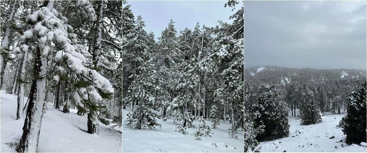 Καλυμμένες από χιόνι είναι οι κορυφές του Τροόδους, με το θέαμα να είναι μοναδικό.