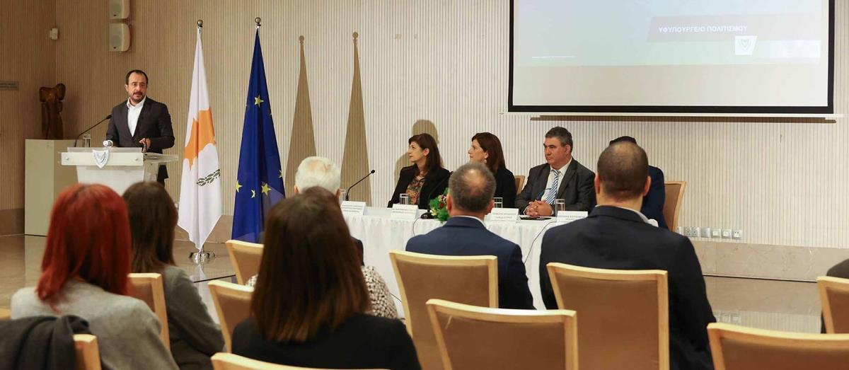 Επίσης, είπε ο Πρόεδρος Χριστοδουλίδης, «αφενός ο πολιτισμός μπορεί να έχει πολλαπλασιαστικά οφέλη στην ανάπτυξη και ενίσχυση της παιδείας μας, αφετέρου μπορεί να αποτελέσει σημαντικό παράγοντα συνεισφοράς σε τομείς, όπως ο τουρισμός και γενικότερα η οικονομική ανάπτυξη και πρόοδος της χώρας μας».