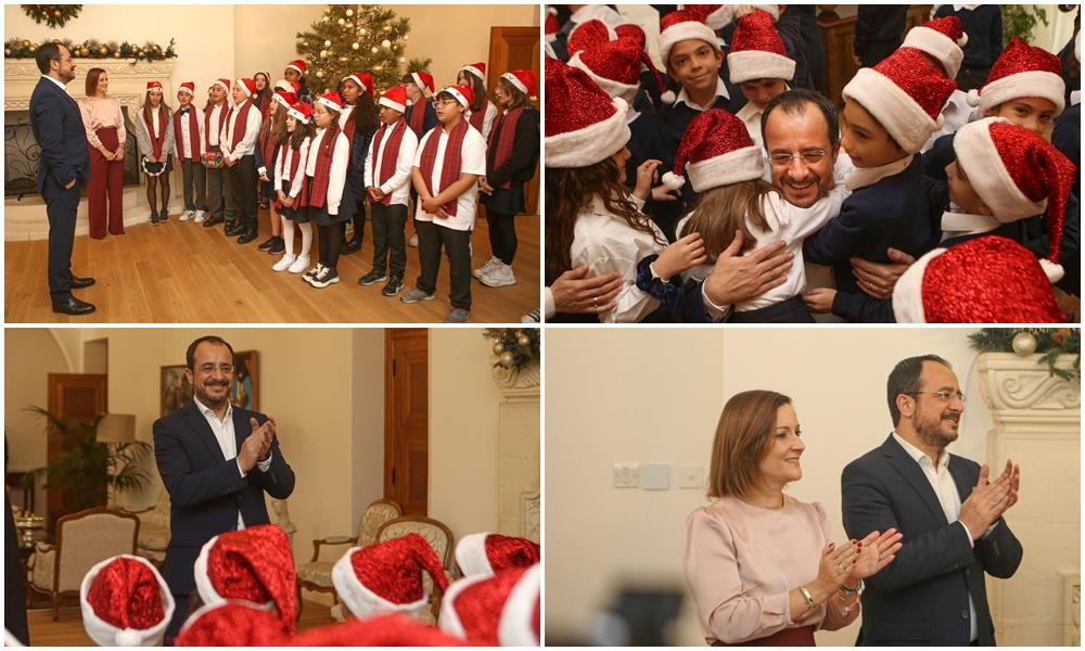 Ο Πρόεδρος της Δημοκρατίας Νίκος Χριστοδουλίδης, και η Πρώτη Κυρία Φιλίππα Καρσερά Χριστοδουλίδη, άκουσαν σήμερα το πρωί, στο Προεδρικό Μέγαρο, τα Κάλαντα από παιδιά Δημοτικών Σχολείων και άλλων Σχολών της ελεύθερης Κύπρου, με την ευκαιρία των εορτών των Χριστουγέννων και του νέου Έτους.