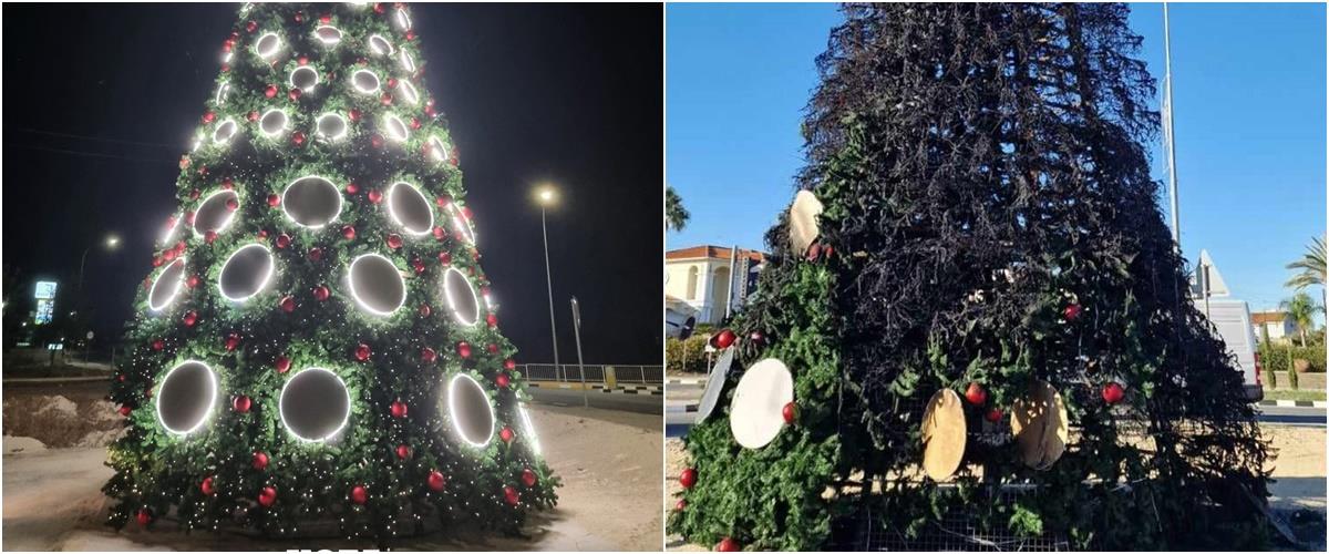 Ολοσχερώς καταστράφηκε το χριστουγεννιάτικο δέντρο του Δήμου Λακατάμιας όταν βάνδαλοι το βράδυ της Τετάρτης, τοποθέτησαν φωτιά.