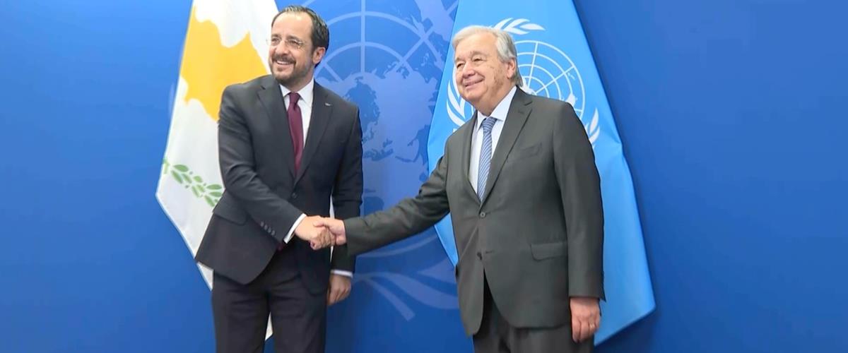 Ο Πρόεδρος της Δημοκρατίας επανέλαβε στον ΓΓ των ΗΕ την αποφασιστικότητα και την ετοιμότητα του για επανέναρξη των διαπραγματεύσεων και τη βούληση του να εργαστεί προς την κατεύθυνση της επίτευξης λύσης του Κυπριακού, στη βάση των σχετικών ψηφισμάτων των ΗΕ και των αρχών και αξιών της ΕΕ.
