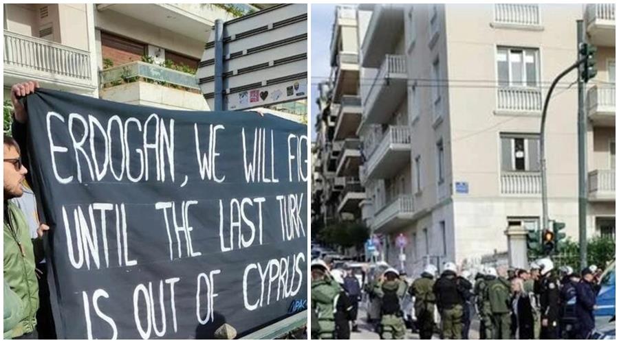 Σε άλλο σημείο της ελληνικής πρωτεύουσας και συγκεκριμένα κοντά στο Υπουργείο Εξωτερικών, ένας άνδρας εμφανίστηκε τυλιγμένος με τη σημαία της Κύπρου, διαμαρτυρόμενος κατ΄ αυτόν τον τρόπο για την επίσκεψη του Τούρκου προέδρου. Ο εν λόγω άνδρας απομακρύνθηκε από τους άνδρες ασφαλείας, του Υπουργείου Εξωτερικών, μετέδωσε ο ΣΚΑΪ.