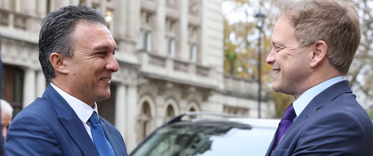 Ο Μιχάλης Γιωργάλλας έγινε δεκτός το πρωί από τον ομόλογό του Γκραντ Σαπς στο βρετανικό Υπουργείο Άμυνας στο Γουάιτχολ. Ο οικοδεσπότης κ. Σαπς υποδέχθηκε τον Κύπριο Υπουργό στην επιβλητική είσοδο του κτιρίου του Υπουργείου με τιμητικό άγημα να είναι παρατεταγμένο στα σκαλιά.