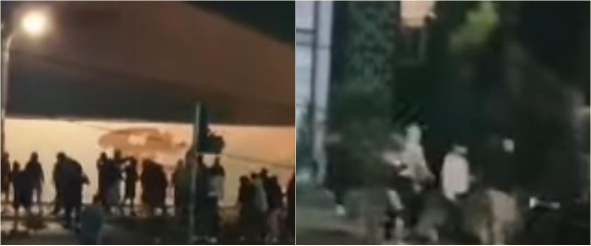Ταυτόχρονα, δεύτερη ομάδα, αποτελούμενη από 70 με 80 άτομα, τα οποία επίσης κρατούσαν ρόπαλα και πέτρες, προσέγγισε τη σκηνή και άρχισαν τη μεταξύ τους ρίψη πετρών, πυροτεχνημάτων και βομβών μολότοφ.