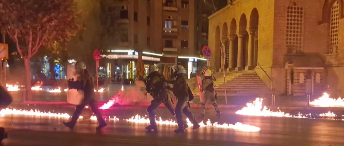Στην Πάτρα, κατά την επιστροφή της δεύτερης πορείας για το Πολυτεχνείο με δεκάδες μολότοφ να πέφτουν.