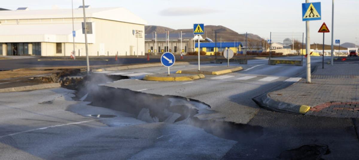 Ενδεικτικές οι εικόνες από το κέντρο της πόλης Γκρίνταβικ, όπου η άσφαλτος έχει ανοίξει και αναδύεται ατμός από τις ρωγμές.