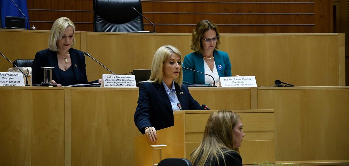 Η συνεδρίαση πραγματοποιήθηκε με πρωτοβουλία της Προέδρου της Επιτροπής και Αντιπροέδρου της Κοινοβουλευτικής Συνέλευσης του Οργανισμού για την Ασφάλεια και τη Συνεργασία στην Ευρώπη (Κ.Σ.ΟΑΣΕ), Ειρήνης Χαραλαμπίδου, η οποία απηύθυνε εισαγωγικό χαιρετισμό στη συνεδρίαση. Χαιρετισμό απηύθυναν επίσης η Πρόεδρος της Βουλής, Αννίτα Δημητρίου, η σύζυγος του Προέδρου της Δημοκρατίας, Φιλίππα Καρσερά - Χριστοδουλίδη, η Υπουργός Δικαιοσύνης, Άννα Κουκκίδη - Προκοπίου, η Πρέσβειρα της Γαλλίας, Σαλίνα Γκρενέτ-Καταλάνο, η Πρόεδρος της Κ.Σ. ΟΑΣΕ, Πία Καούμα, και η πρώην αντιπρόσωπος της Κύπρου στον ΟΑΣΕ, Έλενα Ράφτη.