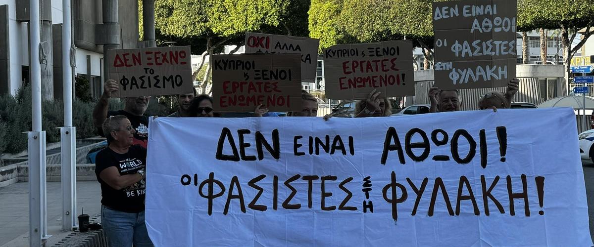Στο μεταξύ, κατά την ακροαματική διαδικασία, έξω από το Δικαστήριο πραγματοποιήθηκε αντιφασιστική εκδήλωση διαμαρτυρίας, με τους παρευρισκόμενους να ζητούν την παραδειγματική τιμωρία των προσώπων που ενέχονται στα σοβαρά επεισόδια.