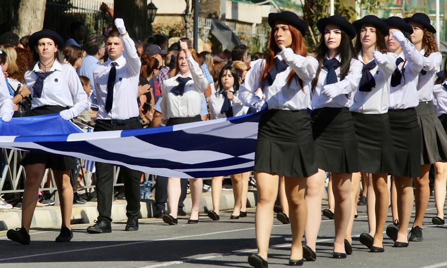 Στις 11.00 π.μ. ο Πρόεδρος της Κυπριακής Δημοκρατίας και ο Πρέσβυς της Ελλάδας θα δεχθούν μπροστά από το οίκημα της Ελληνικής Πρεσβείας το χαιρετισμό της παρέλασης, στην οποία θα πάρουν μέρος αντιπροσωπευτικά τμήματα παλαιών πολεμιστών, σπουδαστών Ανώτερων και Ανώτατων Εκπαιδευτικών Ιδρυμάτων, μαθητών σχολών Μέσης Εκπαίδευσης, Προσκόπων, Σωματείων και Οργανώσεων.