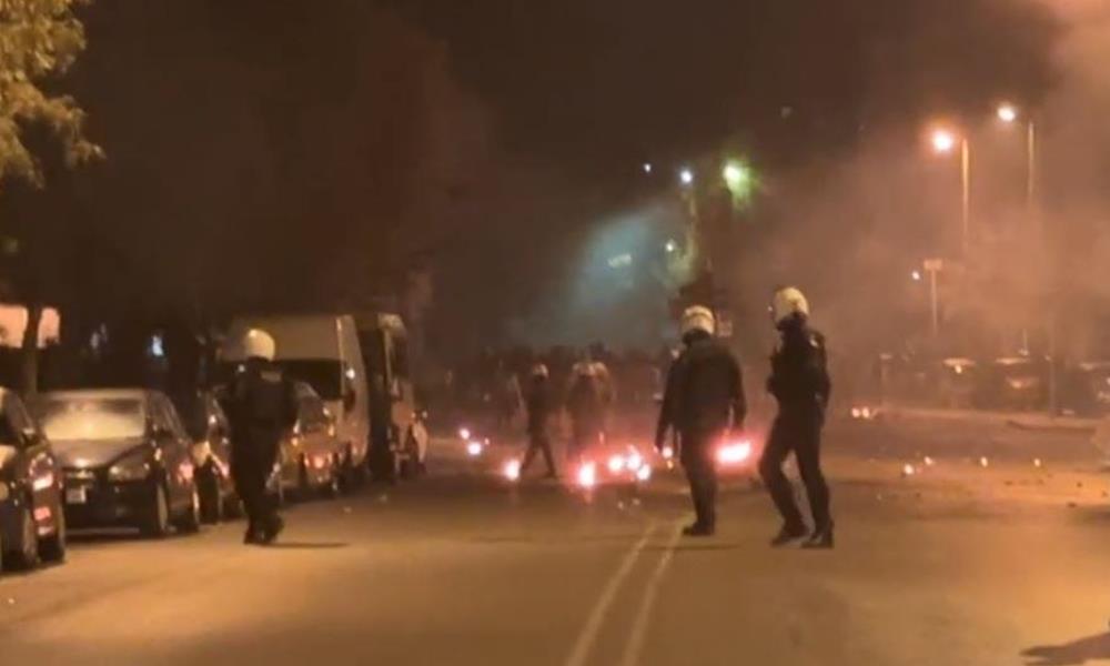 Νεαροί κουκουλοφόροι πέταξαν μολότοφ και πέτρες στις αστυνομικές δυνάμεις που συγκεντρώθηκαν στην περιοχή, που απάντησαν με χρήση χημικών. Στις φλόγες τυλίχθηκε ένα σχολικό λεωφορείο.