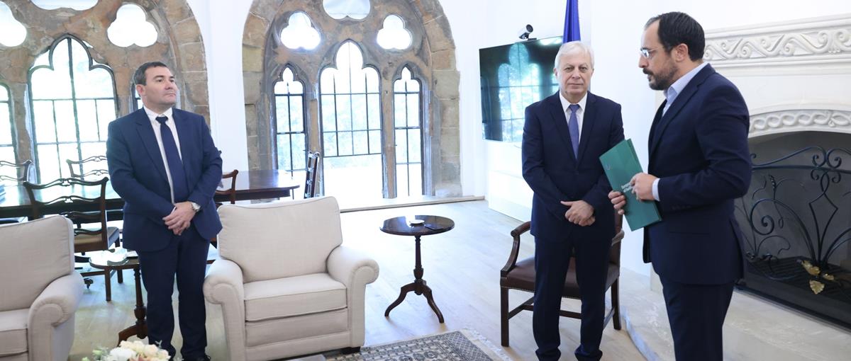 Ο Πρόεδρος της Δημοκρατίας, Νίκος Χριστοδουλίδης παρέλαβε σήμερα, στο Προεδρικό Μέγαρο, την ετήσια έκθεση του Ευρωπαϊκού Ελεγκτικού Συνεδρίου για το 2022 από το Μέλος του Ευρωπαϊκού Ελεγκτικού Συνεδρίου, Λευτέρη Χριστοφόρου, στην παρουσία του επικεφαλής του Γραφείου του κ. Χριστοφόρου, Θεοδόση Τσιόλα.
