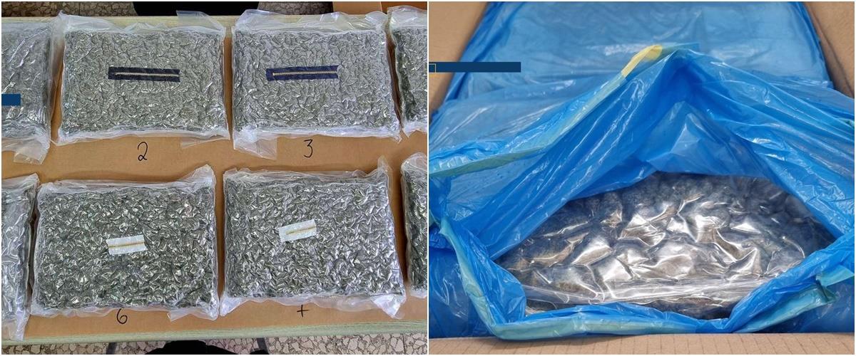 Κατά τη διάρκεια της έρευνας εντοπίστηκαν σε χαρτοκιβώτιο, 8 συσκευασίες οι οποίες περιείχαν συνολικά 8 κιλά και 975 γραμμάρια ξηρής φυτικής ύλης που πιστεύεται ότι είναι κάνναβη.