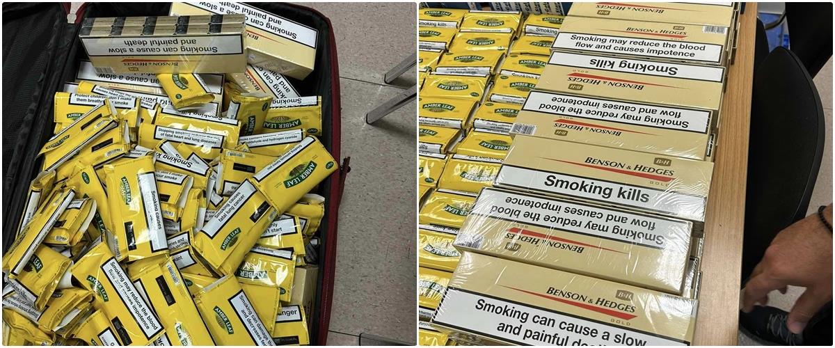Tο Τμήμα Τελωνείων, σε έλεγχο που διενήργησε στις αποσκευές επιβάτη που θα αναχωρούσε την Δευτέρα 25/9/2023 από το Αεροδρόμιο Πάφου για το Ηνωμένο Βασίλειο, εντόπισε και κατάσχεσε μεγάλη ποσότητα αδασμοαφορολόγητων καπνικών προϊόντων, τα οποία μεταφέρθηκαν παράνομα από τις κατεχόμενες προς τις ελεύθερες περιοχές της Κυπριακής Δημοκρατίας με σκοπό την εξαγωγή και πώληση τους στο Ηνωμένο Βασίλειο.