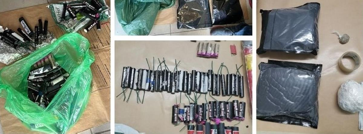 Κατά τη διάρκεια της έρευνας εντοπίστηκαν σε διάφορα σημεία του σπιτιού και παραλήφθηκαν ως τεκμήρια, ποσότητα κάνναβης συνολικού μεικτού βάρους ενός κιλού και 360 γραμμαρίων, 66 εργοστασιακές κροτίδες και 16 χειροφωτοβολίδες.