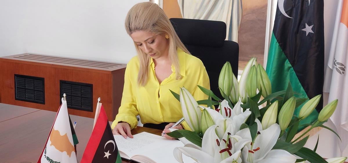 Τα ειλικρινή συλλυπητήρια για τα χιλιάδες θύματα και την ισχυρή αλληλεγγύη προς τη Λιβύη σε αυτές τις δύσκολες στιγμές εξ ονόματος όλων των μελών της Βουλής των Αντιπροσώπων εξέφρασε την Πέμπτη η Πρόεδρος της Βουλής των Αντιπροσώπων, Αννίτα Δημητρίου, υπογράφοντας το βιβλίο συλλυπητηρίων, που ανοίχθηκε στην πρεσβεία της Λιβύης στη Λευκωσία, για τις καταστροφικές πλημμύρες που έπληξαν τη χώρα.