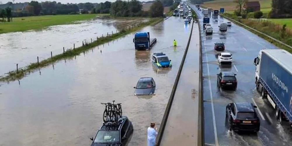 BINTEO: Πλημμύρισε κεντρικός αυτοκινητόδρομος από την κακοκαιρία στη Γερμανία