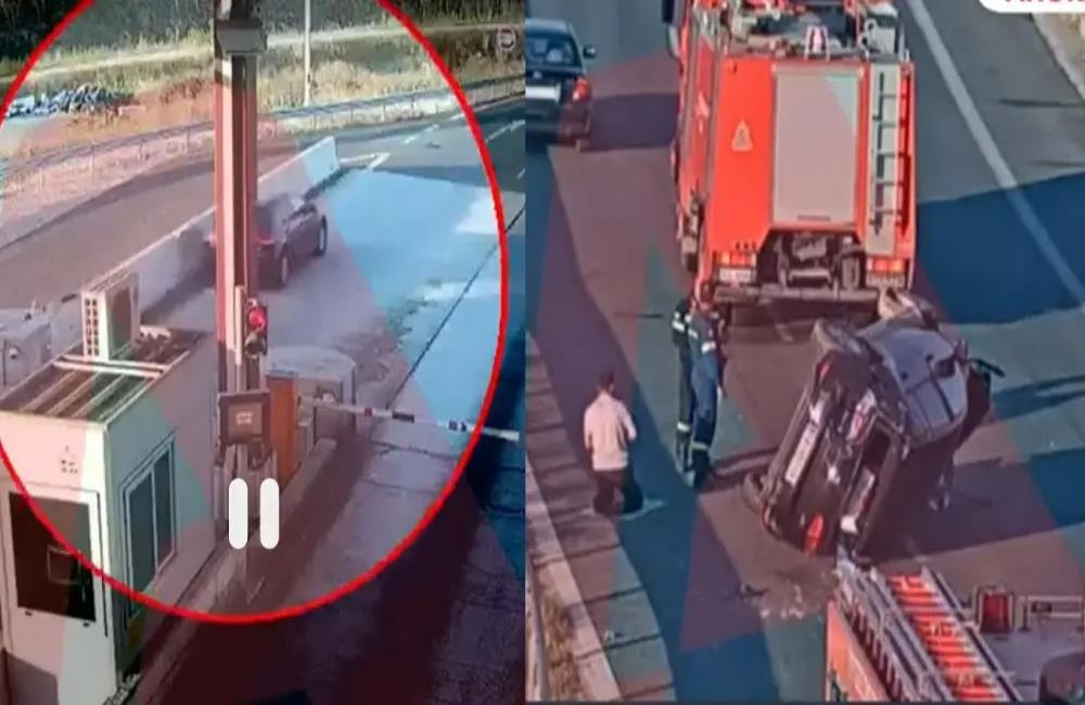 Τούρκος οδηγός έσπασε τις μπάρες διοδίων στον Λαγκαδά με ιλιγγιώδη ταχύτητα-Εκτινάχθηκε το όχημα του