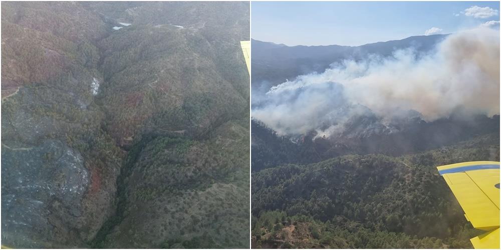 Ενεργοποιήθηκε το Σχέδιο ΙΚΑΡΟΣ 2 που αφορά τις επιχειρήσεις πτητικών μέσων, αφού επιχείρησαν εννέα εναέρια μέσα πυρόσβεσης. Πιο συγκεκριμένα την επιχείρηση κατάσβεσης συνέδραμαν το ένα αεροσκάφος του Τμήματος Δασών, τα τέσσερα μισθωμένα αεροπλάνα, τα δύο μισθωμένα πυροσβεστικά ελικόπτερα, ένα ελικόπτερο της Εθνικής Φρουράς και το συντονιστικό ελικόπτερο της Αστυνομίας.