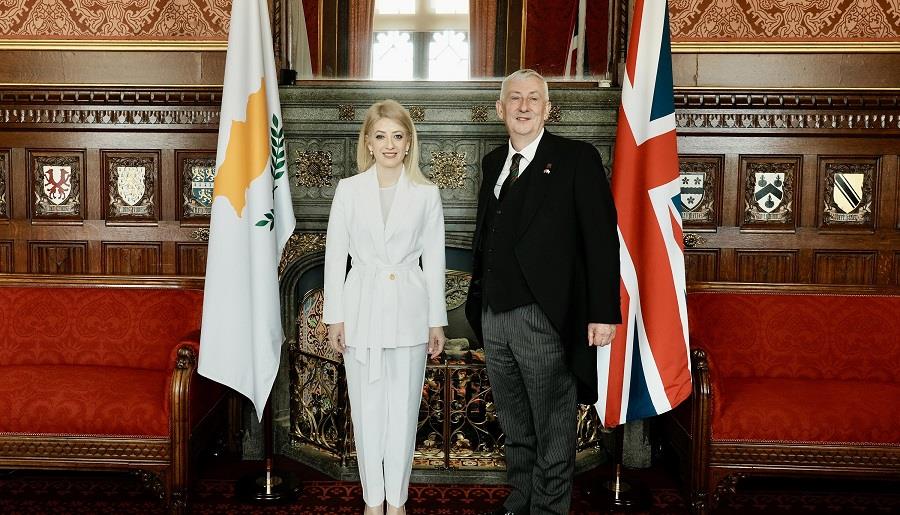 Νωρίς το πρωί της Δευτέρας η Αννίτα Δημητρίου έγινε δεκτή από τον ομόλογό της, Πρόεδρο της Βουλής των Κοινοτήτων, σερ Λίντσεϊ Χόιλ στο κτίριο του βρετανικού κοινοβουλίου στο Γουέστμινστερ.