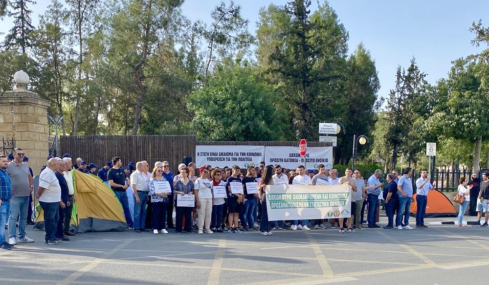 Εκδήλωση διαμαρτυρίας για τη στεγαστική πολιτική, πραγματοποίησαν το απόγευμα της Τετάρτης έξω από το Προεδρικό Μέγαρο, οι Επαρχιακές Επιτροπές ΑΚΕΛ Λευκωσίας - Κερύνειας και ΕΔΟΝ Λευκωσίας – Κερύνειας. Στήνοντας αντίσκηνα στην είσοδο του Προεδρικού, οι συμμετέχοντες στη συμβολική εκδήλωση θέλησαν να αναδείξουν το εντεινόμενο πρόβλημα στέγασης, που αντιμετωπίζουν ιδιαίτερα νέες οικογένειες και φοιτητές, ενώ αντιπροσωπεία ΑΚΕΛ και ΕΔΟΝ επέδωσε υπόμνημα στην Αναπληρώτρια Κυβερνητική Εκπρόσωπο Δόξα Κωμοδρόμου, με προτάσεις για την επίλυση του προβλήματος.