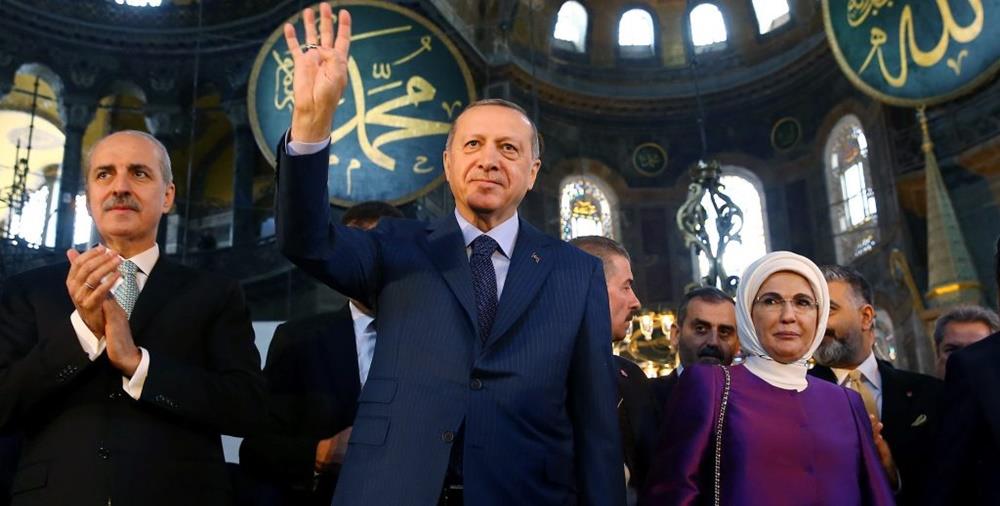 Με την προσευχή στην Αγία Σοφία θα ολοκληρώσει μία προεκλογική εκστρατεία γεμάτη ύβρεις και κακοκρυμμένες απειλές, διατυπωμένες από τον ίδιο ή το περιβάλλον του, κατά του αντιπάλου του Κεμάλ Κιλιτσντάρογλου. «Ολόκληρη η Δύση είχε τρελαθεί! Αλλά εγώ το έκανα!», καυχήθηκε αναφερόμενος στην μετατροπή της Αγίας Σοφίας σε τζαμί.