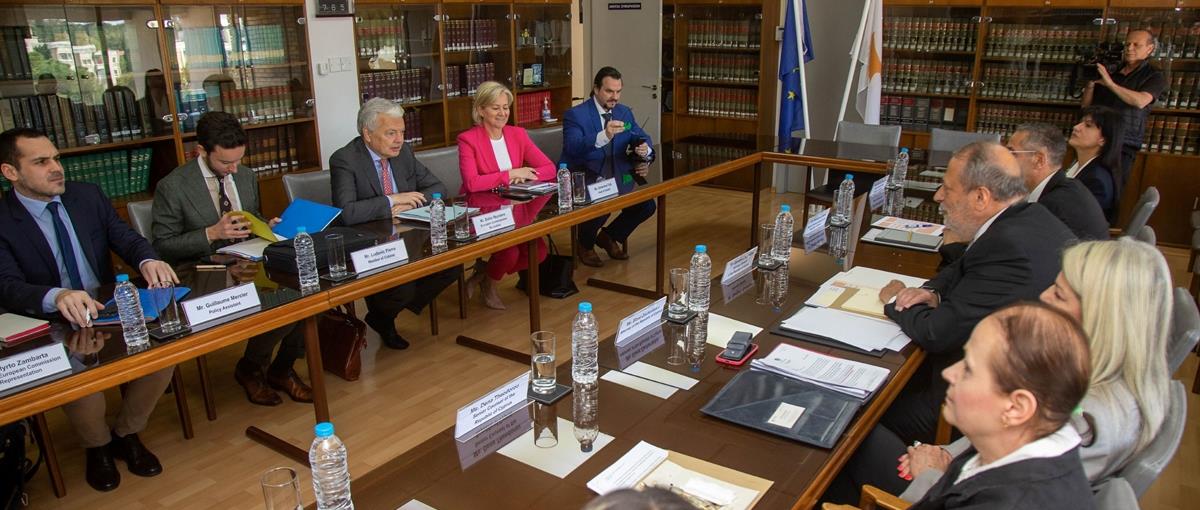 Η δικαστική μεταρρύθμιση στην Κύπρο, η εφαρμογή των κυρώσεων κατά της Ρωσίας και το ζήτημα της διαφθοράς ήταν ανάμεσα στα θέματα που τέθηκαν επί τάπητος στη σημερινή συνάντηση του Επιτρόπου Δικαιοσύνης της ΕΕ, Ντιντιέρ Ρέιντερς, και της Υπουργού Δικαιοσύνης και Δημοσίας Τάξεως, Άννας Κουκκίδη-Προκοπίου, στο Υπουργείο Δικαιοσύνης. Μετά το πέρας της συνάντησης ο Επίτροπος Ρέιντερς μίλησε, μεταξύ άλλων, για τα χρυσά διαβατήρια και για τη δέσμευση ρωσικών περιουσιακών στοιχείων στην Κύπρο.