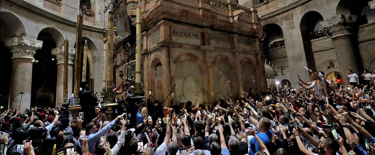 Πλήθος πιστών προσέρχεται στον Πανίερο Ναό της Αναστάσεως στα Ιεροσόλυμα για την τελετή της αφής του Αγίου Φωτός, το οποίο από το Ισραήλ θα μεταφερθεί σε κάθε ορθόδοξη γωνιά του πλανήτη, ο οποίος βρίσκεται σε αντίστροφη μέτρηση για το μεγάλο θαύμα του Χριστιανισμού, της Ανάστασης του Κυρίου