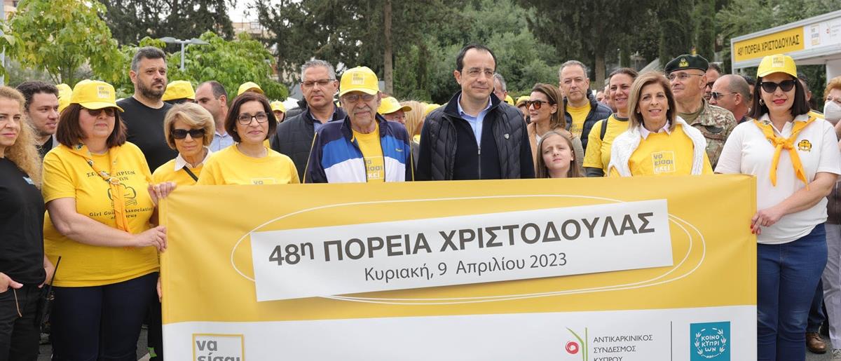 Τη διαβεβαίωση ότι η Κυβέρνηση θα συνεχίσει να είναι παρούσα στη μακροβιότερη εκστρατεία για απάμβλυνση του ανθρώπινου πόνου σε θέματα που αφορούν στον καρκίνο, ενισχύοντας την προσπάθεια του Αντικαρκινικού Συνδέσμου Κύπρου, έδωσε την Κυριακή ο Πρόεδρος της Δημοκρατίας, Νίκος Χριστοδουλίδης, κηρύσσοντας την έναρξη της 48ης Πορείας Χριστοδούλας στη Λευκωσία, μπροστά από το Κέντρο Ανακουφιστικής Φροντίδας «Αροδαφνούσα».